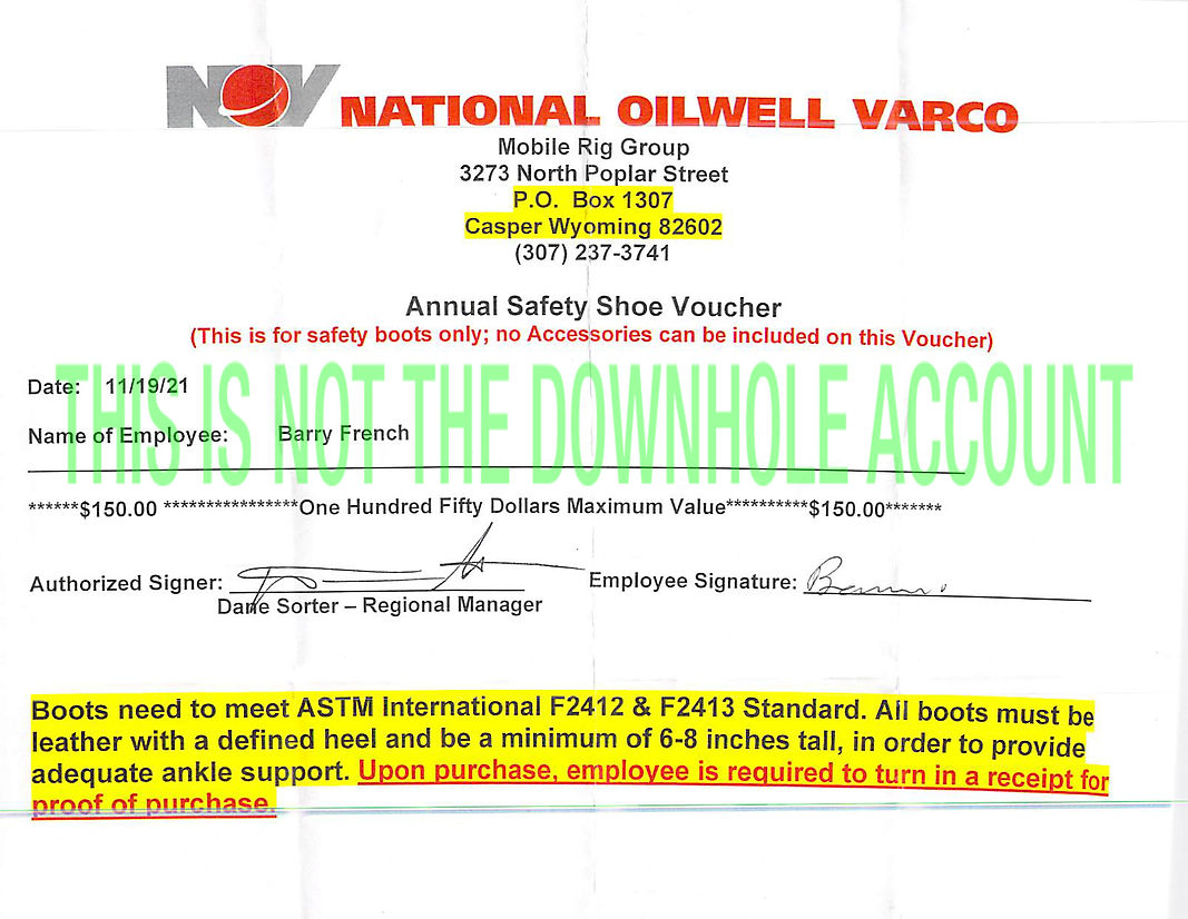 If you see National Oilwell Varco (DOWNHOLE) in the SHIP TO section of the voucher or DOWNHOLE in RED lettering at the bottom of the voucher, YOU'VE SELECTED THE WRONG CUSTOMER. USE NATIONAL OILWELL VARCO DOWNHOLE instead.